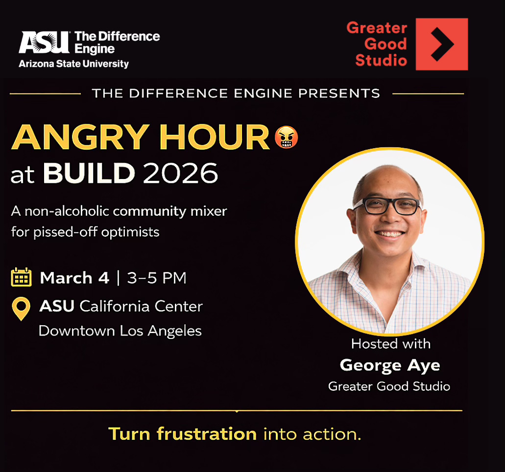 Feeling frustrated about the state of the world? Join me and our community of Difference Engineers in a few weeks for our version of happy hour, “Angry Hour” with George Aye from Greater Good Studio. It’ll be a great time!